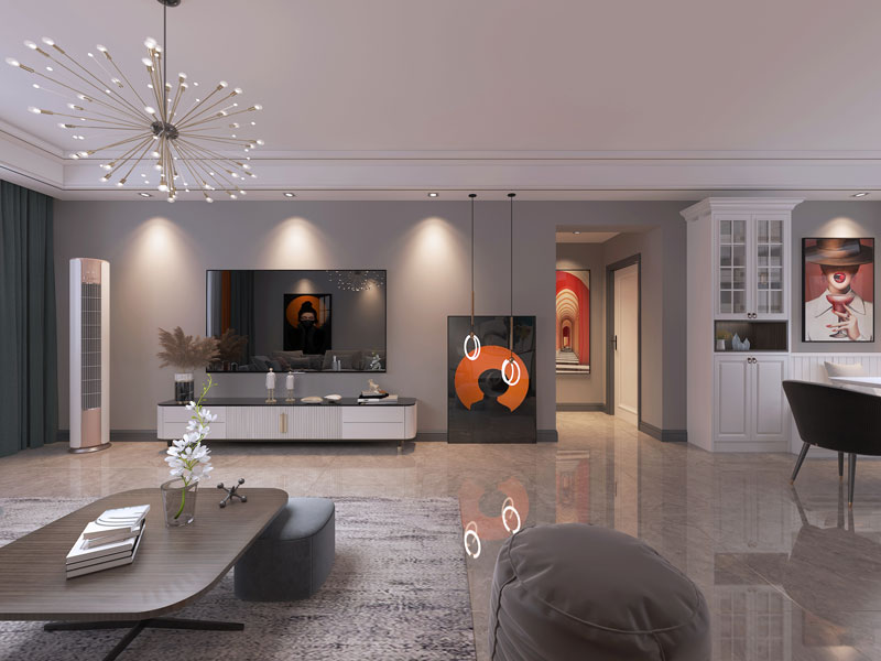 本案风格为现代简约,灰、白、黑淡雅而又不失庄重,简约而耐人寻味,把空间化繁为简,单调不失趣味。色彩的点缀于碰撞,赋予空间生命与灵动。