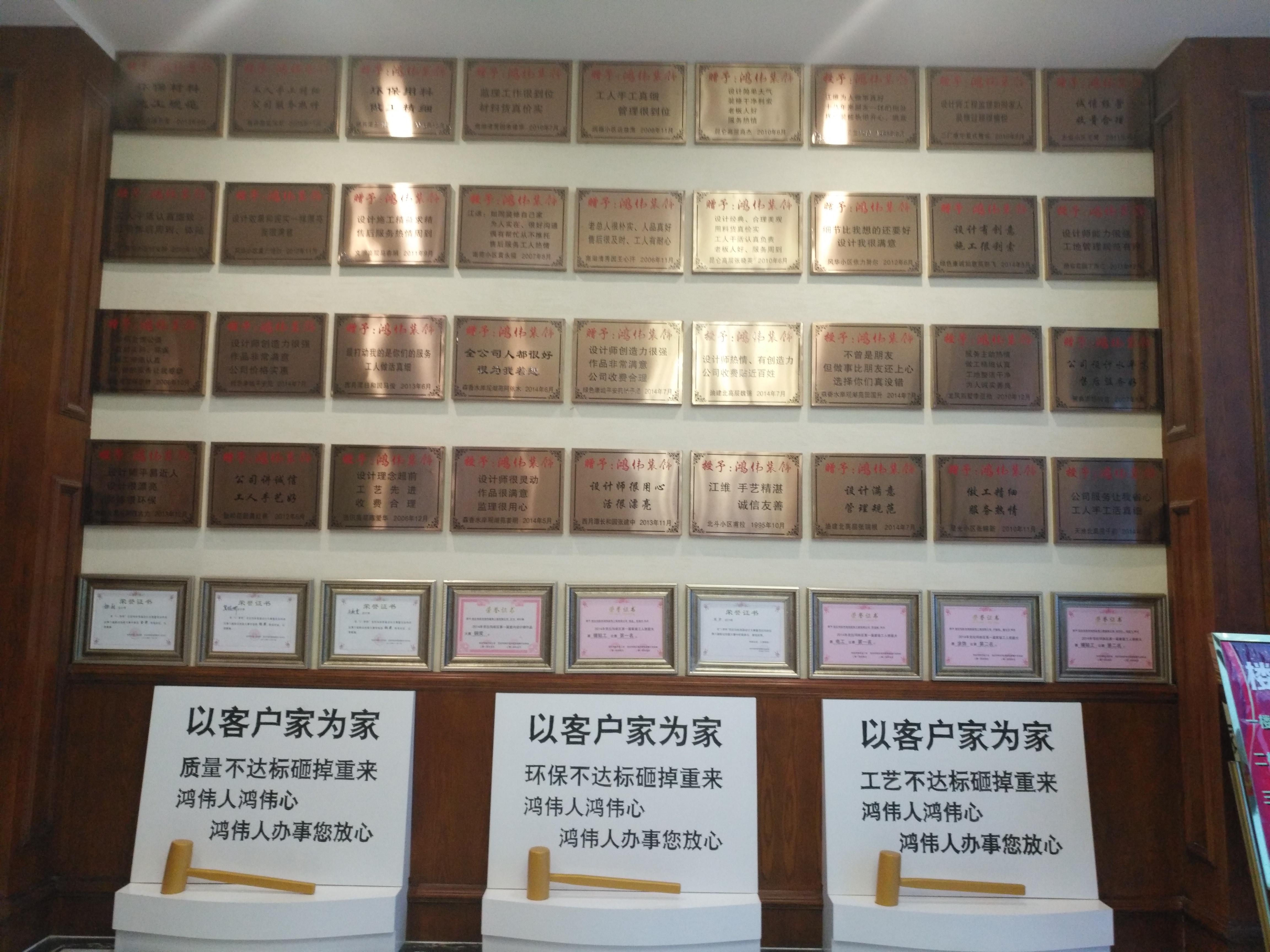 祝贺鸿伟装饰获得“最佳组织奖”;设计师分别获得金奖、银奖、铜奖