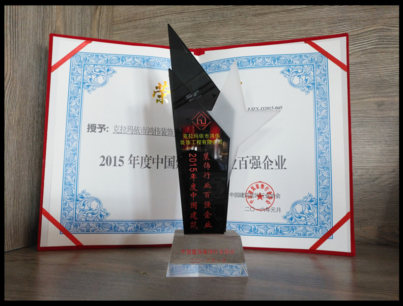 鸿伟装饰是首批由克拉玛依区政府、克拉玛依区装饰装修协会授予的诚信经营单位、是12315零投诉单位、设计大赛荣获金奖、最佳软配奖单位、技工技能大赛荣获电工、瓦工一等奖单位、新疆学习型组织先进单位…目前在克市有两家公司:一处在幸福路阳光建材市场二期十栋205室,一处在吉祥路康城商业街63-101号,现有来自全国各地的设计精英11位,设计助理5位;有高水准的施工管理项目经理8位……
