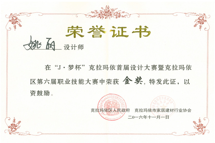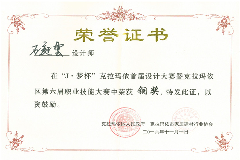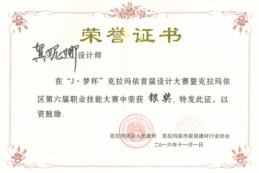 2016年11月1日,“J•梦杯”克拉玛依首届设计大赛决赛在克拉玛依大学城如期举行,到会领导有克拉玛依区政府人员、区委人员、克拉玛依家居建材行业协会,剪纸协会、市民群众等。受到了各界人士的广泛关注。鸿伟装饰是“J•梦杯”克拉玛依依首届设计大赛“最佳组织奖”获得者。受到克拉玛依市民和区政府的高度关注,更为行业树立了典范,成为大家学习的榜样。