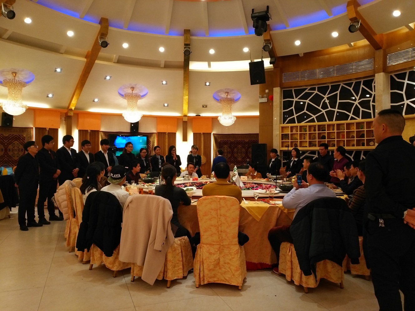2017.1.8号晚上9点,鸿伟装饰2016年年会在克拉玛依石油宾馆最大的蒙古包包厢内举行,参会人员有公司董事长江维和爱人王云秀及公司内的员工共计28名员工,江总还邀请好20多位的鸿伟近年来的战略合作伙伴,一同庆祝鸿伟的2016,展望鸿伟的2017.