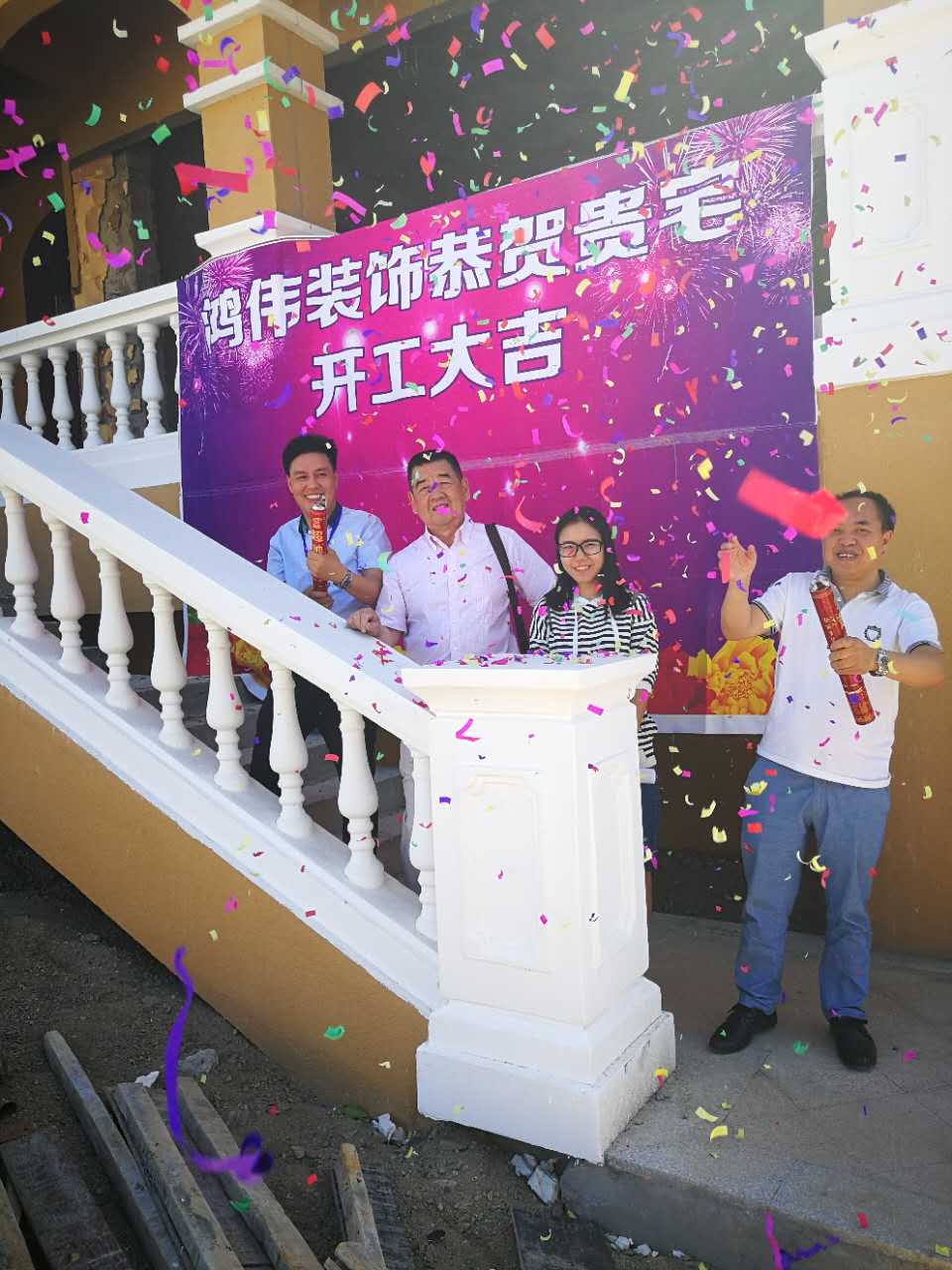 伴随着震耳欲聋的鞭炮声,贵宅迎来了开工大吉。