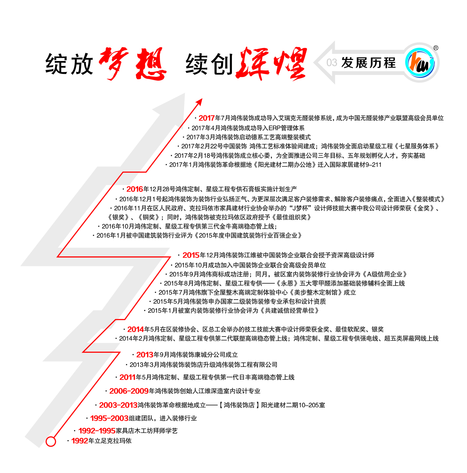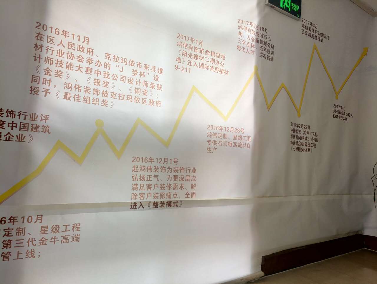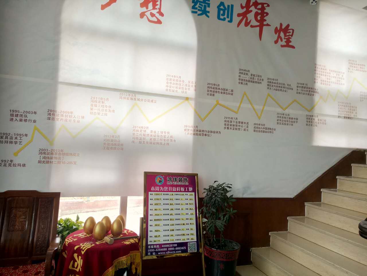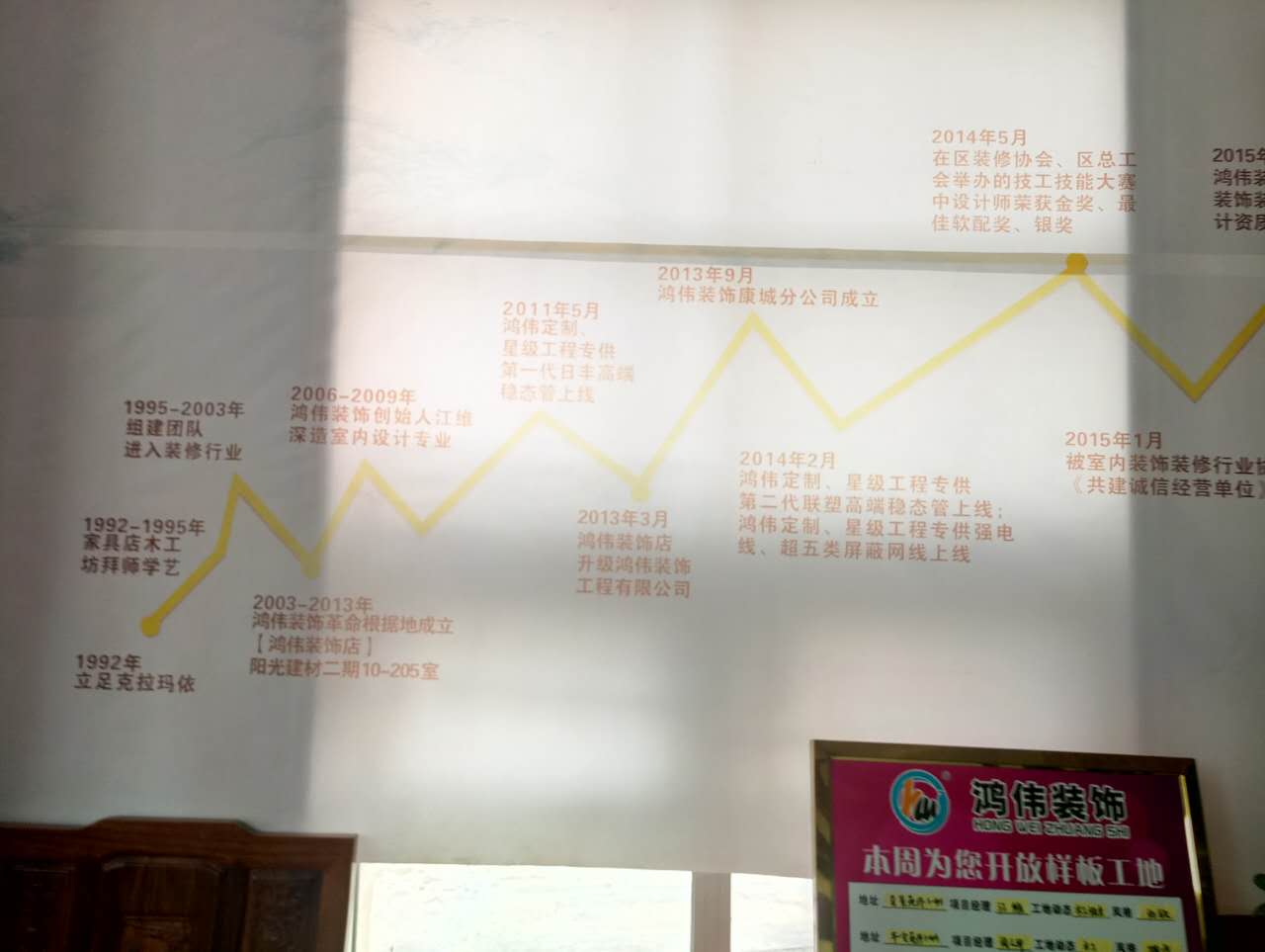克拉玛依市鸿伟装饰工程有限公司于1992年在克市立足,一直以来从事室内外装饰装修工程。在此期间,鸿伟人始终坚持以客户利益高于公司利益,个人利益服从集体利益的核心价值观为油城百姓创建了一个个温馨的家园;为许多商业人士打造了理想的经营场所;为企业单位干下了许多优质工程……鸿伟人以勤.诚.精.责.业.法的精神走过了二十五个春秋.