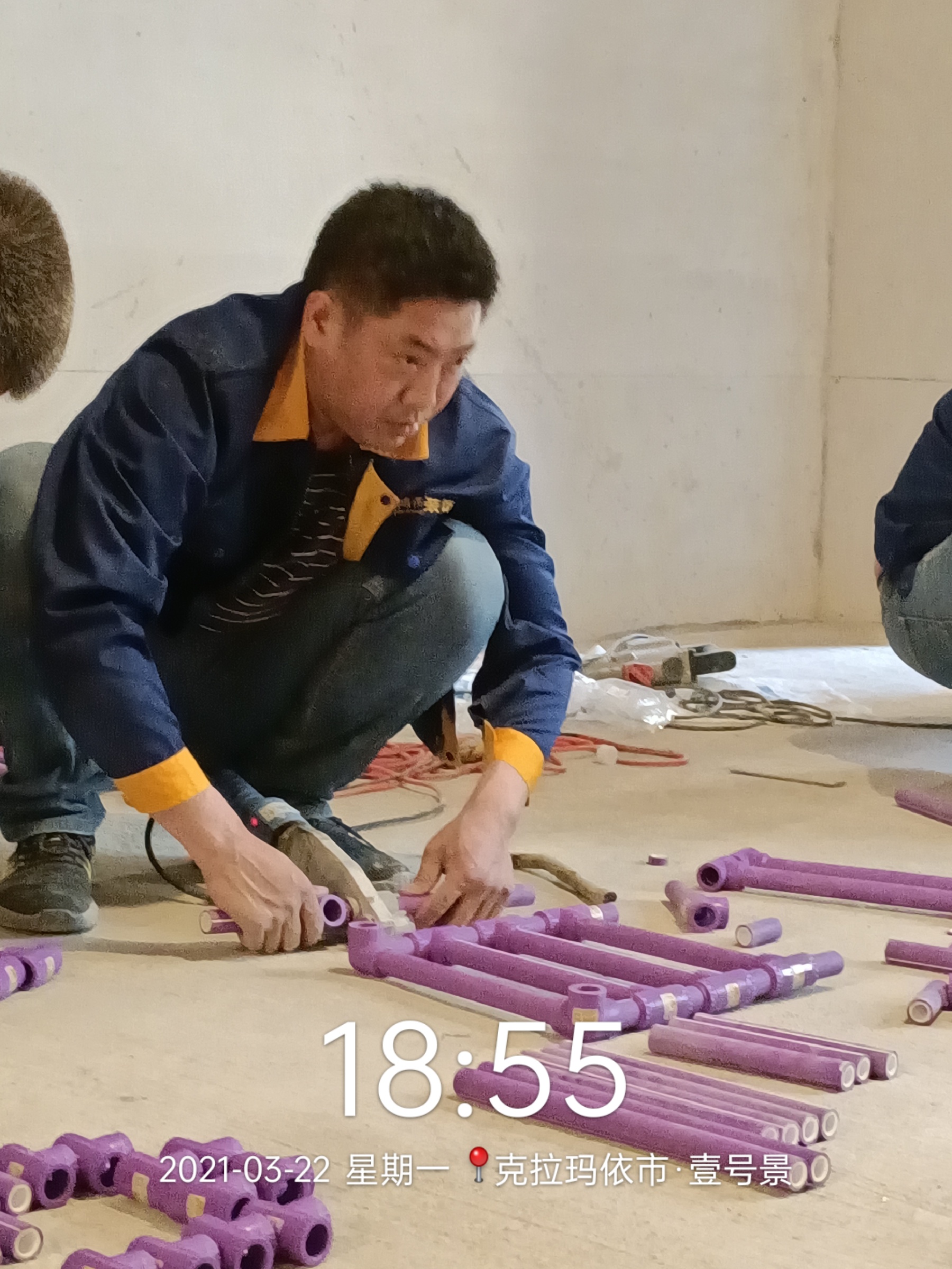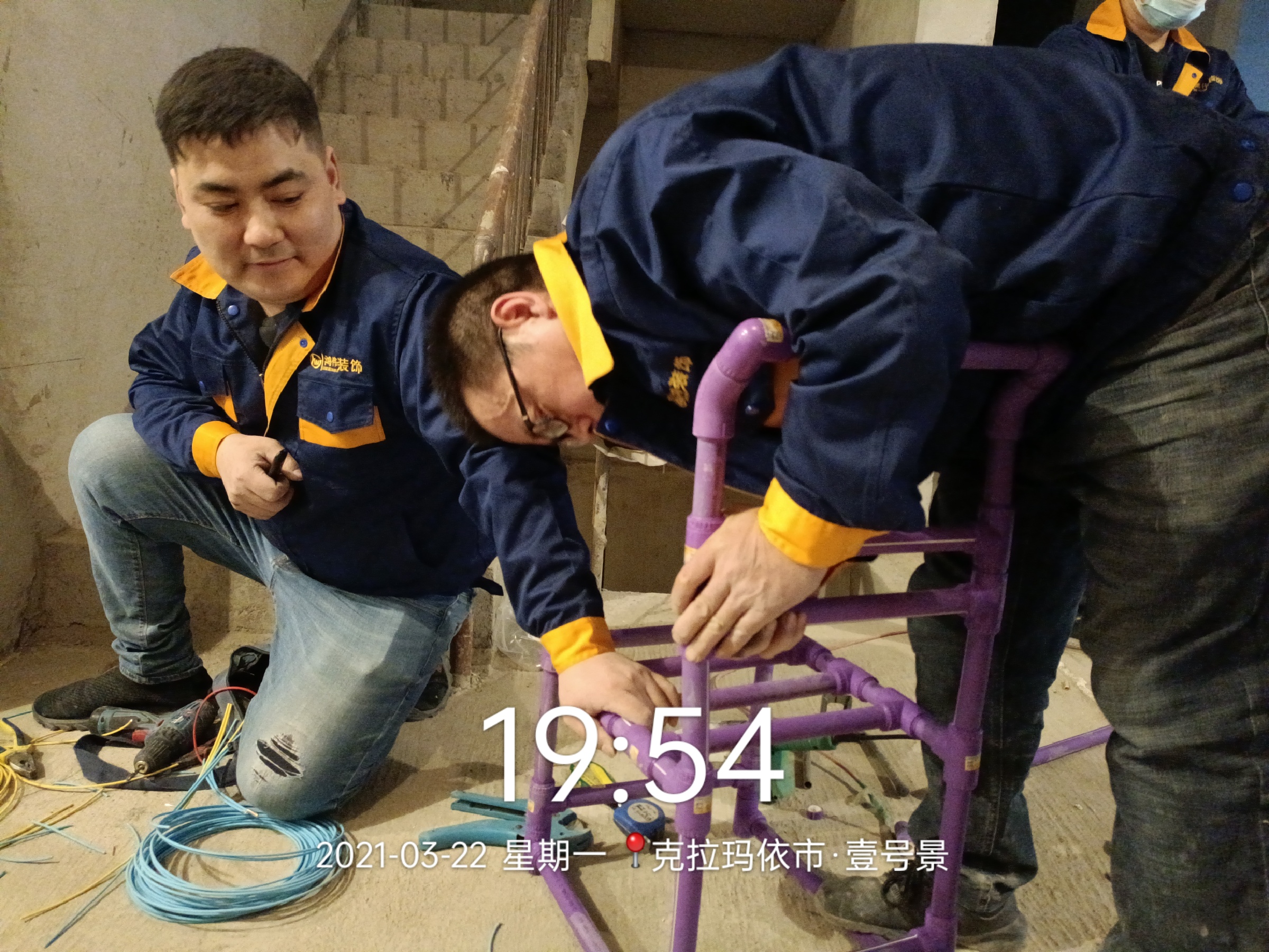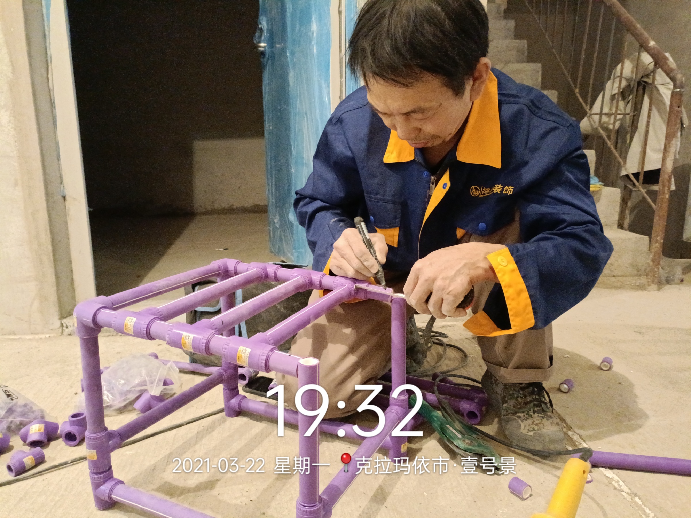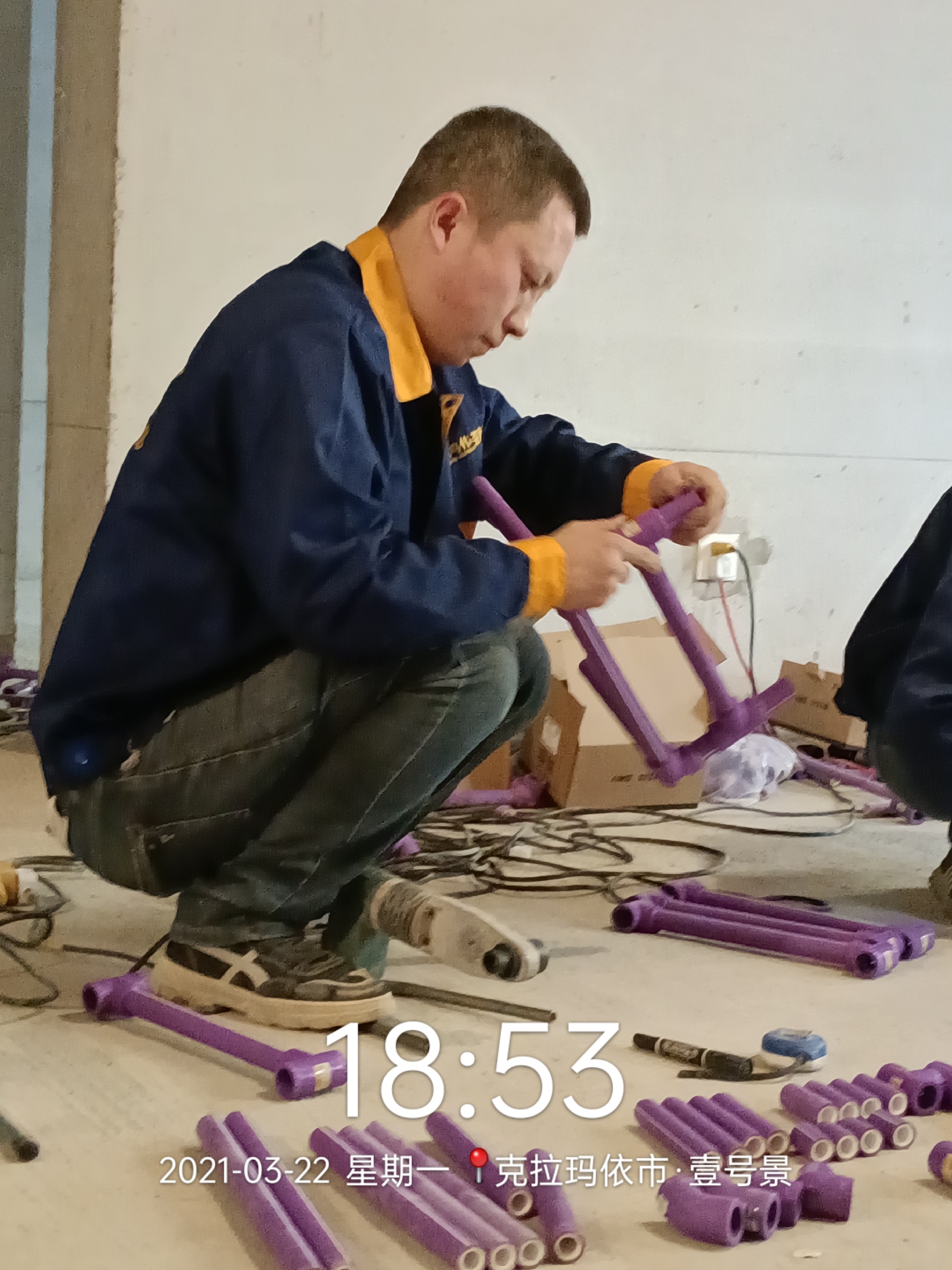 早已备好的:管线、三通、等弯三通、90°弯头、45°弯头等一系列配件,在师傅们的手里排着队争先恐后的等着把它们嵌入属于它的位置。