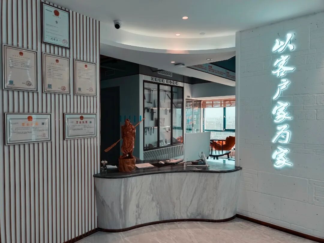 一进入公司大门,映入眼帘的就是我们的服务理念:以客户家为家。感受到的是鸿伟装饰的专业,资质证书整齐陈列。