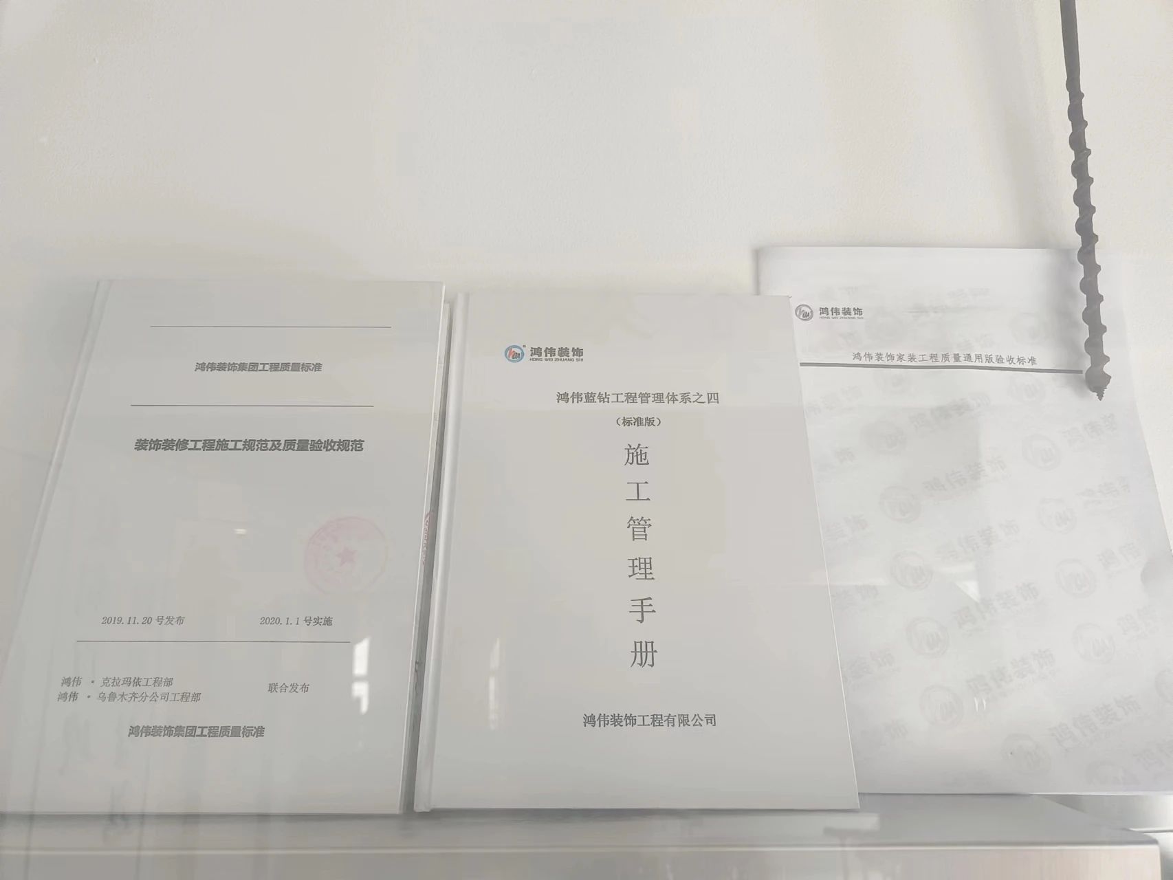 上图为鸿伟技工大赛一等奖工匠与注册建造师严苛打造《鸿伟蓝钻工程技术标准》用474个节点品控追踪+《鸿伟7S工地文化管理体系》贯通融合。