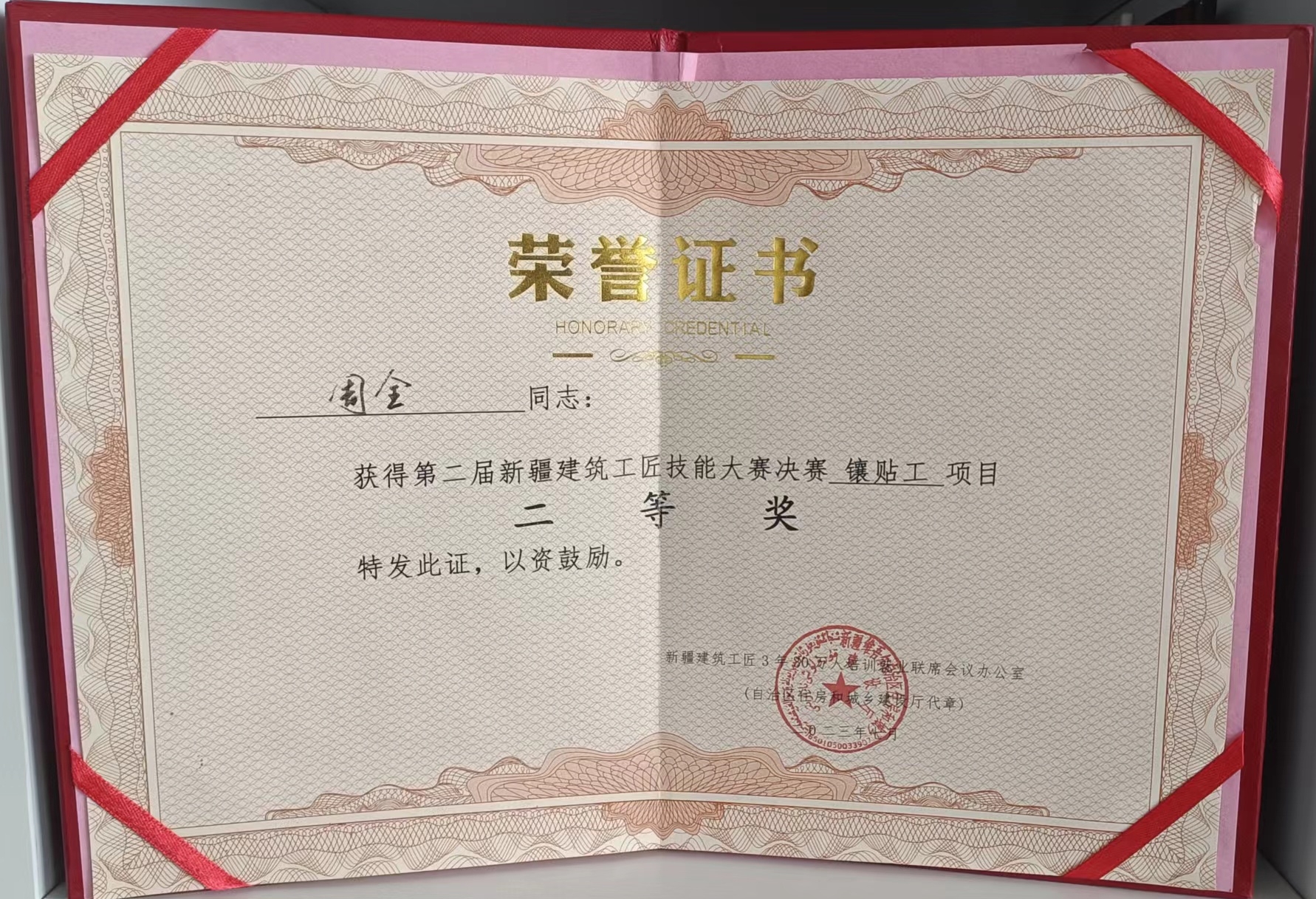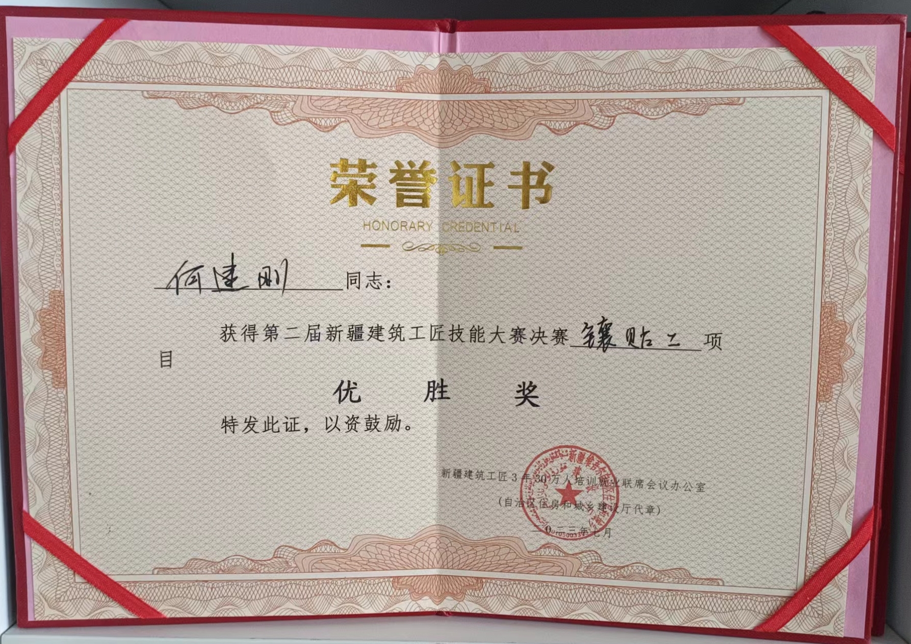 《新疆鸿伟装饰设计工程有限公司》有幸受克拉玛依市克拉玛依区住建局邀请出战2023年第二届新疆建筑工匠技能大赛;