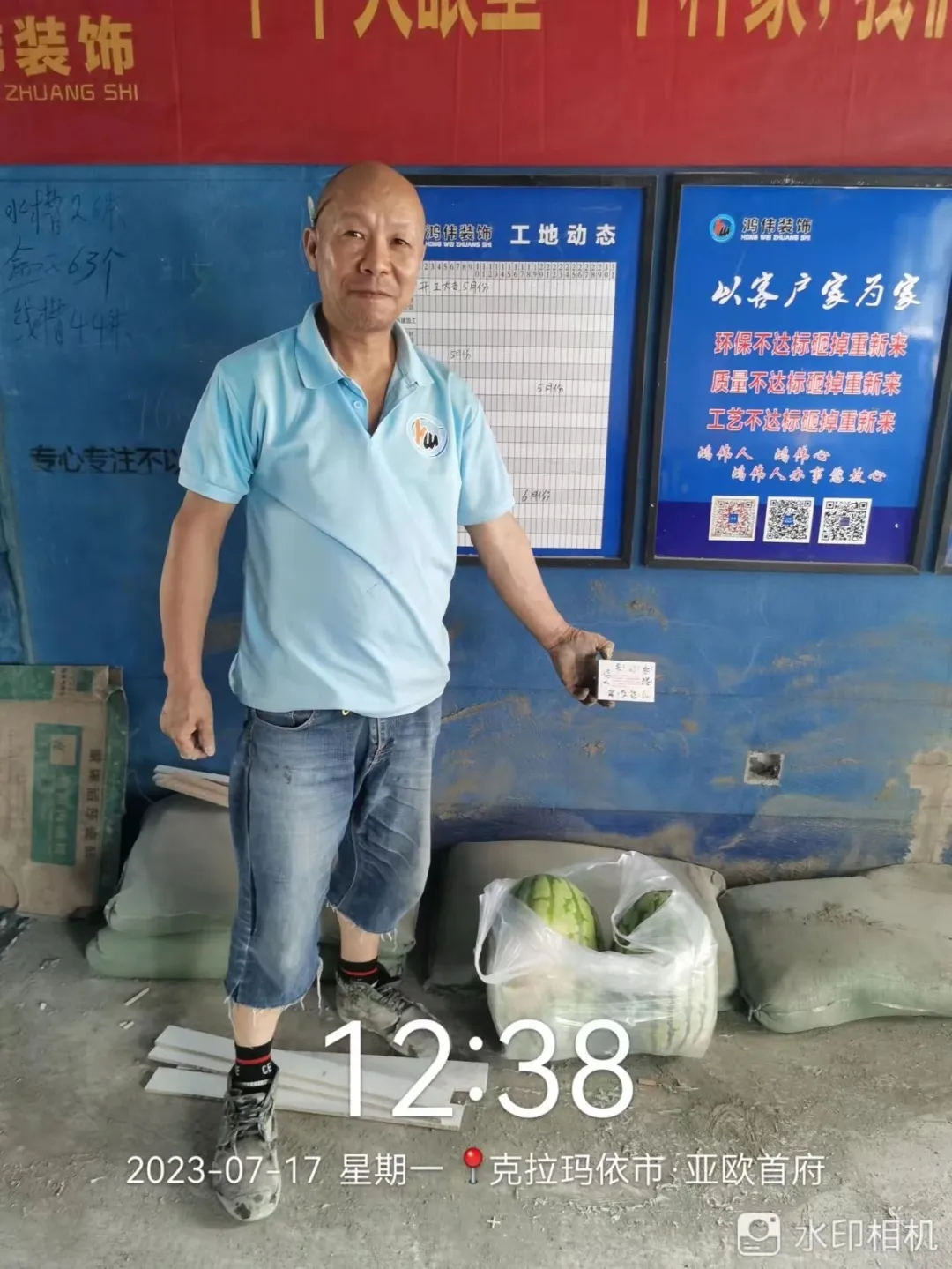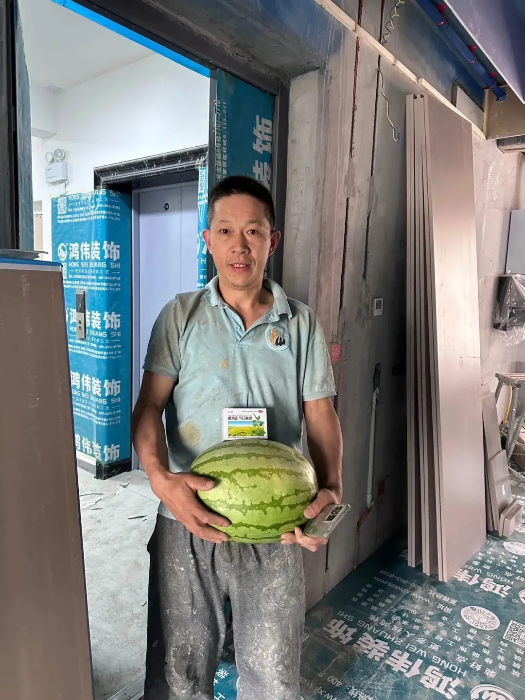 鸿伟装饰为一线工地工人送去清凉,